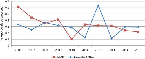 Figure 1: Global bio/pharma outsourcing of drug product manufacture 2006-2015. Courtesy of author.