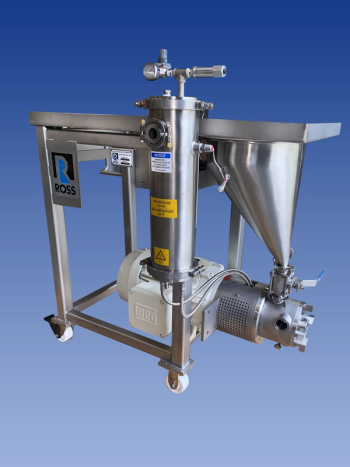 The ROSS Model HSM-405SC-25 Inline High Shear Mixer with solids/liquid injection manifold (SLIM) Technology is designed for production floors that require flexibility.