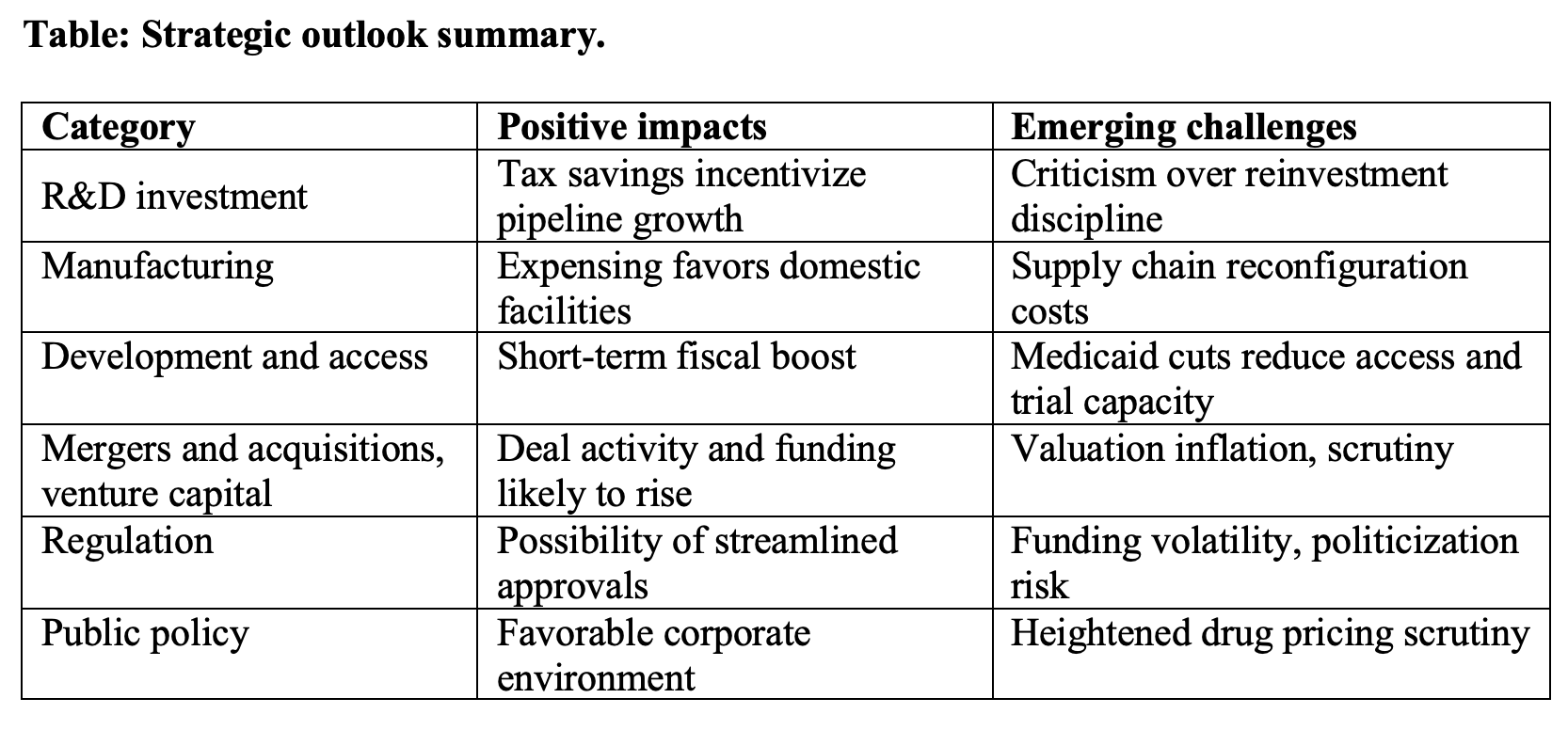 While headline impacts focus on tax relief and economic stimulus, the bill has deeper implications for drug discovery, development, and manufacturing alongside secondary effects on investment flows, clinical infrastructure, and global supply strategies.