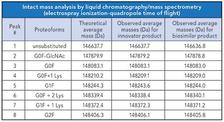 CLICK FIGURE TO ENLARGE Figure 2. Intact mass profile of biosimilar product.
