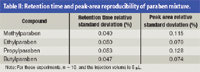 Table II: Retention time and peak-area reproducibility of paraben mixture.