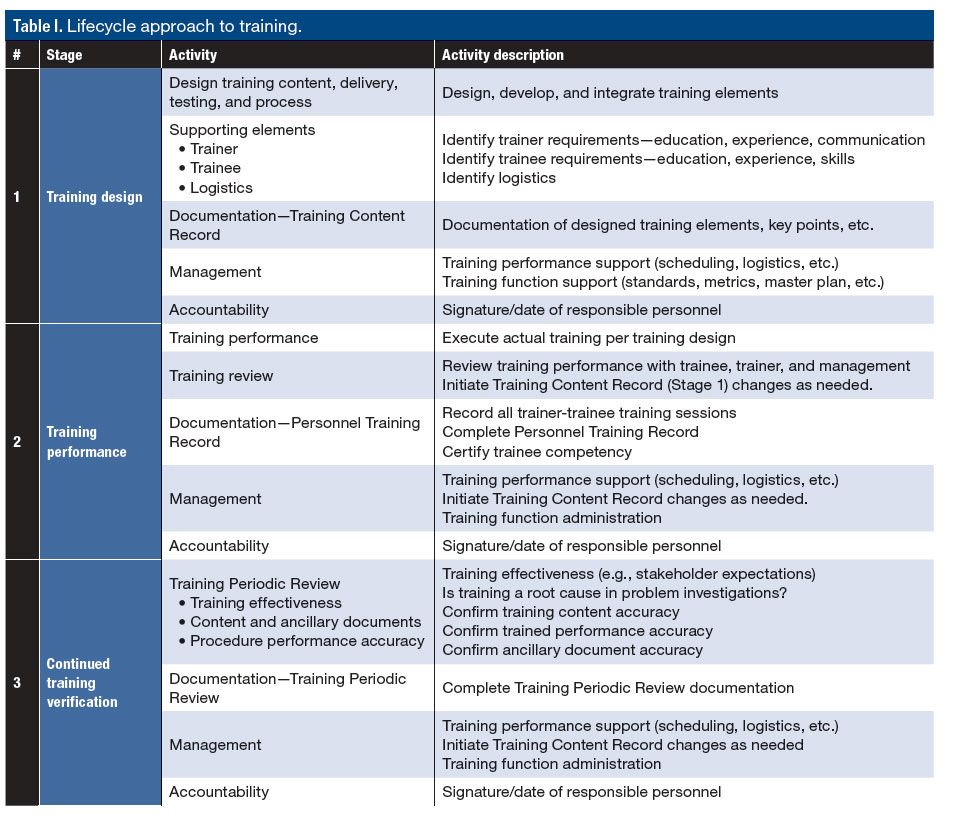 Table I. Lifecycle approach to training.
