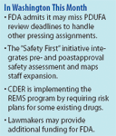 FDA officials feel the heat. Janet Woodcock, director of the Center for Drug Evaluation and Research (CDER), told the House Appropriations subcommittee in February that FDA is "an agency under assault" and that continued attacks make it more difficult to attract and retain the scientists the agency needs. Former CDER Director Carl Peck echoed Woodcock's remarks at the annual meeting of the Food and Drug Law Institute (FDLI) in March. He described FDA as operating in a "guerilla environment" created by "ambitious politicians, media competing for headlines, and opportunistic academics." The latest "roadside bomb," said Peck, was a widely cited study published in The New England Journal of Medicine indicating that new drugs approved close to user fee deadlines are less safe than those approved without such time pressures.