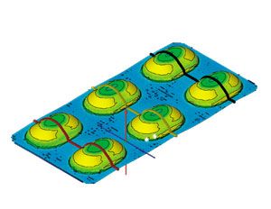 Figure 1. A three-dimensional image, generated by the Live Stress Check tool, illustrates strain and shows where adjustments should be made in forming process. Photo is courtesy of Constantia Flexibles.