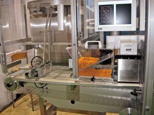 The MHI Eagle blister packaging machine (see Figure 1) operates at speeds up to 100 blisters per minute at a maximum index length of 90 mm and maximum index width of 130 mm. Designed for lower volume runs, the compact, servo-driven machine with inline inspection and multi-zone preheating is especially well-suited to copackers and lines with frequent changeovers (1). With hand screws to expedite tooling changes, changeover takes less than 10 minutes and requires no tools. Other quick changeover features include recipe-driven format change and a feeder station on wheels that plugs into the main unit. “We sell two feeder stations for the price of one-and-a-half so feeders can be swapped at changeover,” says Zaic. Swapping units moves feeder cleaning offline and minimizes downtime for cleaning. The Eagle blister packager accepts feeders from other manufacturers and is easily integrated with a printer or cartoner.