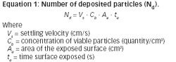 Acknowledging the fact that cleanroom operators are often the main source of microorganisms, it can be useful to study the probability that microorganisms will contaminate certain areas associated with operators. To calculate the gravitation deposition of a concentration of airborne viable particles, Whyte describes an equation (Equation 1).5