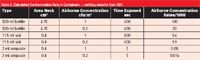 As another example, comparisons can be made between different filling techniques. If vials in filling process A have the same exposed area, airborne concentration and settling velocity as ampoules in process B, but twice the exposure time, the calculated contamination rate is doubled for process A. The guidelines1,2 do not make any exceptions between these two techniques, but in theory, the airborne concentration at process B could be twice as high as for process A and still have equal contamination risk.