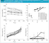 Figure 1(b) shows the tabletting behaviour of Vis 328, a material that consists of both κ- and λ-carrageenan. It was assumed that its behaviour does not differ from Gel 911 and Vis 109. However, the result shows that this composite material is much more plastic in its behaviour; d and e are higher compared with the pure types. Furthermore, fast elastic decompression is lower because ω is higher. The Heckel analysis (Figure 2[a]) underlines this result as the slope of the Heckel function is the highest of all materials. The β–γ diagram (Figure 2[b]) and energy calculations (Figures 2[c] and [d]) show fewer differences. Vis 328 behaves similarly to Vis 109. A reason for this high plasticity might be that in this composite product the texture of the fibres is less homogeneous and thus, the fibres deform more plastic.