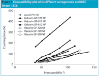 Figure 9 Compactibility plot of six different carrageenans and MCC (mean6SD).