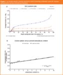 There are several methods in the literature using gravimetric vapour sorption techniques to quantify amorphous contents.2–5 Most of these methods are based on the amorphous phase sorbing more vapour than the crystalline phase. Amorphous materials typically have a higher surface area and vapour affinity than their crystalline counterparts. For vapour sorption methods, a calibration of known amorphous contents is usually necessary. The equilibrium vapour uptakes at a particular vapour concentration are then plotted against the known amorphous content, and the result is a straight line to which unknown amorphous contents can be compared. Figure 1 shows the octane vapour sorption isotherms (a) and calibration curve (b) for lactose samples with varying amorphous contents. The error margins in Figure 1b were based on the first standard deviation for repeat measurements (n = 3). Amorphous standards were created by making physical mixtures of 100% amorphous and 100% crystalline lactose. The resulting calibration curve and correlation coefficient (R2 = 0.9994) suggests that amorphous contents below 0.5% were achievable with an accuracy of ± 0.3%. Other vapour sorption approaches have also been able to quantify amorphous contents below 1% with similar accuracies.2–5