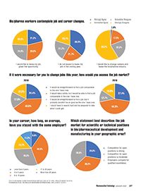An employee’s view of the job market is often colored by recent work experiences-whether positive or negative-and their most recent salary increase. Professionals working in biopharma drug development and manufacturing are concerned about the size of their paychecks, but other factors-including challenging work, job security, and company stability-may be more important when making career change decisions.