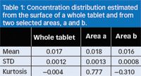 Table 1: Concentration distribution estimated from the surface of a whole tablet and from two selected areas, a and b.