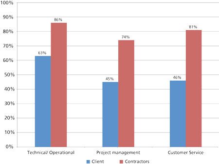 We continue to poll the industry on perceptions of service provider performance. In 2014, as in past years, there is a significant gap between how customers see CMO/CDMO performance and how they see themselves (Figure 6). The big gaps continue to be in the “soft” areas of project management and customer service, but there is greater satisfaction with levels of technical and operational performance.