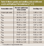 Table II: Water uptake and swelling ratio of different acrylic acid hydrogel formulations (n* = 3)