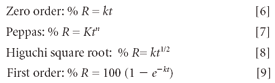The data of release profiles for each formulation further were analyzed by model fitting using the following equations: