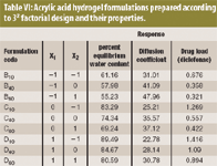 Table VI: Acrylic acid hydrogel formulations prepared according to 32 factorial design and their properties.