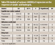 Table VII: Analysis of variance (ANOVA) of regression on the responses of acrylic acid hydrogels.