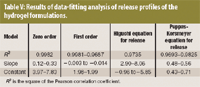 Table V: Results of data-fitting analysis of release profiles of the hydrogel formulations.