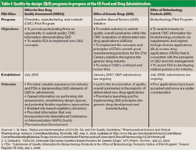 Table I: Quality-by-design (QbD) programs in progress at the US Food and Drug Administration.