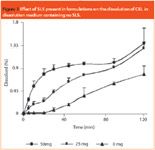 However, the dissolution medium could discriminate between various concentrations of SLS (Figure 3). Addition of even 25 mg of SLS into the formulation drastically improved the dissolution of CEL. These results stress on two important issues