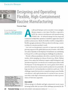 When referring to this article, please cite it as T. Page, "Designing and Operating Flexible, High-Containment Vaccine Manufacturing," Pharmaceutical Technology and BioPharm International Vaccine Development and Manufacturing 2017 eBook (November 2017).