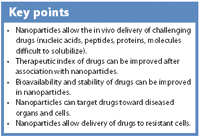 Nanoparticulate drug carriers will be important for the administration of molecules that have high therapeutic potential, but currently produce severe side-effects. Because nanotechnologies allow a more precise delivery of the therapeutic compound to the target cells, they may also reduce drug concentrations in healthy organs and tissues. The improvement of drug delivery minimizing the side-effects has been proved in treatment of cancer with doxorubicin and of infections with amphothericin B or halofantrine.4,45,59,60