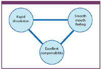 Rapid dissolution, smooth mouth feeling, and excellent compressibility are three properties of fast dispersible excipients that are extremely important (see Figure 1). No single materials meet all these requirements, so Ludiflash (BASF SE, Ludwigshafen, Germany) was developed. This formulated mixture of mannitol, polyvinyl acetate, and crospovidone is a highly functional material that can be compressed directly and does not need complex and time-consuming processes such as mixer granulation, fluidized bed granulation, roller compaction, or freeze drying.