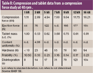 Table II: Compression and tablet data from a compression force study at 40 rpm .