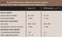 Table 1 KLa and OTR values of different cultivation systems (source: Enfors 2003 and Wave Biotech AG, Switzerland).