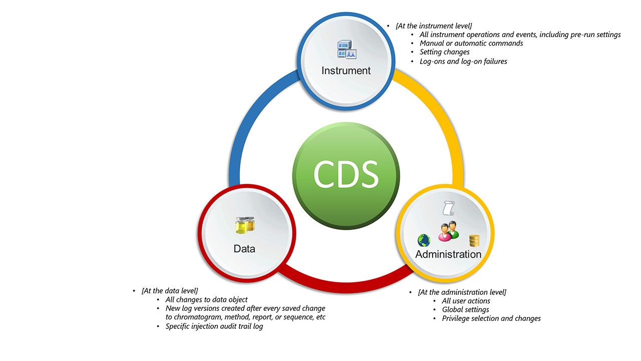 Tracking the who, what, and when. Modern CDS solutions can now comprehensively track the who, what, and when of pharmaceutical manufacturing and testing operations. The most advanced solutions accomplish this by tracking data, covering everything from instrument configuration and data processing to system administration (Figure 1).