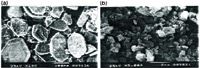 Figure 1 SEM of norfloxacin raw materials; (a) RM1 and (b) RM2.