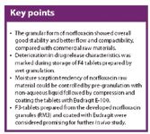 The granular form of norfloxacin (RM3) prepared in the present work showed better overall physicomechanical properties compared with RM1 and RM2, including: