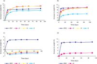 The characteristics of raw materials induced different levels of moisture uptake by their respective tablets. The highest level was observed with F2 and to a lesser extent with F1. However, the desorption process occurring with F3 tablets prepared by pregranulation was not noted with RM3, while F4 tablets prepared by wet granulation showed only a small increase (up to 2%) of its weight. This may be because of the inherently high initial moisture level following the wet granulation adopted in preparation of F4 tablets. The moisture uptake levels of the tablets stored at 25 °C were higher than those obtained upon storage at 40 °C, in accordance with those obtained with norfloxacin raw material.