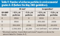 Table II: Number of airborne particles in environmental grades AâD (before the May 2003 guidelines).