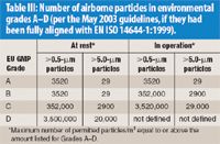 Table III: Number of airborne particles in environmental grades AâD (per the May 2003 guidelines, if they had been fully aligned with EN ISO 14644-1:1999).