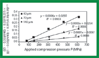 Helle et al. derived a simple relationship that assumes all powders are monosized spheres and the number of contacts per particle resembles microindentation and increases during stage-two compaction (2, 8):
