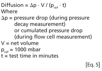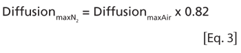 If nitrogen is being used instead of compressed air, the maximum allowable diffusion rate must be modified accordingly to avoid false passed test results (see Equation 3):