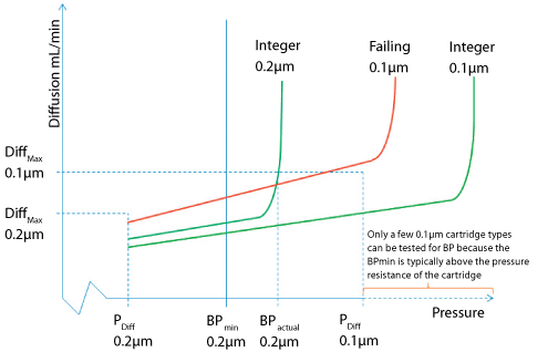 If a 0.1 µm membrane cartridge is tested at a pressure that is significantly lower than the expected bubble point for a 0.2 µm membrane cartridge, one Figure 1).