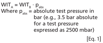 Filter suppliers also use different test limits for a given size of filters. The test methods may have the same name such as water intrusion test (WIT) but may measure different things. The WIT from supplier A expresses the measured value as a gas flow; the WIT from supplier B expresses the measured value as a water flow. Supplier C uses cartridge-specific factors that are only available from that supplier.