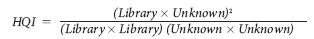 The typical library search consists of correlating the full spectrum of a test (unknown) sample to a reference (library) spectrum using the Hit Quality Index (HQI), shown in the following equation: