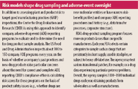 A more recent innovation is to adjust the level of regulatory scrutiny to a facility's overall risk level. CDER compliance officials have refined a risk model to select sites for GMP inspections, reported John Gardner, director of the division of compliance risk management in CDER's Office of Compliance, in a presentation at FDA's Science Forum in April. Gardner noted that this approach also is being applied to FDA oversight of manufacturer adverse event reporting programs and to drug-product sample analysis (see sidebar, "Risk models shape drug sampling and adverse-event oversight").