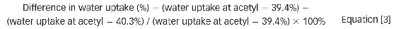 The difference in water uptake by acetyl content is calculated by the following equation: