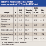 Table VII: Accuracy and linearity for measurements at 25 °C for the FMS 1400.