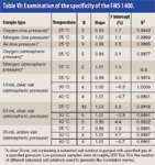 The FMS 1400 allows the water activity over lyophilized cake samples to be measured directly in a nondestructive manner. As discussed previously, the principal advantage of the FMS 1400 system is the lack of bias introduction that is associated with a sample-vial measuring system, which provides an advantage over using a single measurement chamber for all samples. As the table shows, the FMS 1400 instrument also can be used at a wider range of temperatures than the traditional capacitive-sensor and chilled-mirror techniques. Finally, the FMS 1400 sample vial is not susceptible to the leaking observed with the other two approaches.