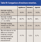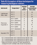 Table III: Comparison of three techniques for measuring headspace moisture.