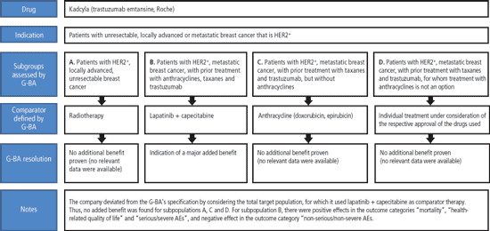Even before G-BA consultations, manufacturers need to give greater consideration to the product’s indication. While the indication does not determine how the benefit assessment is conducted, completed assessments indicate that it can influence the G-BA’s comparator choice and a pivotal trial’s relevance. For products with broad indications, IQWiG and the G-BA are demanding clinical data for multiple patient subpopulations and against multiple ACTs. For example, these commissioning bodies recently distinguished between four subpopulations and ACTs for Roche’s Kadcyla (see Figure 2) (11). Manufacturers that have failed to anticipate and include such data are seeing a significant reduction in the overall level of added benefit granted to their products (e.g., Pixuvri and Inlyta) (12). Moving forward, manufacturers will need to ensure that all relevant subpopulations have robust and statistically significant clinical endpoints to support reimbursement, with increasing demand for quality of life data. If the resources required to study multiple populations using multiple comparators are too great, pursuing a narrower indication for a clearly defined patient population and against a single comparator serves as a viable alternative.