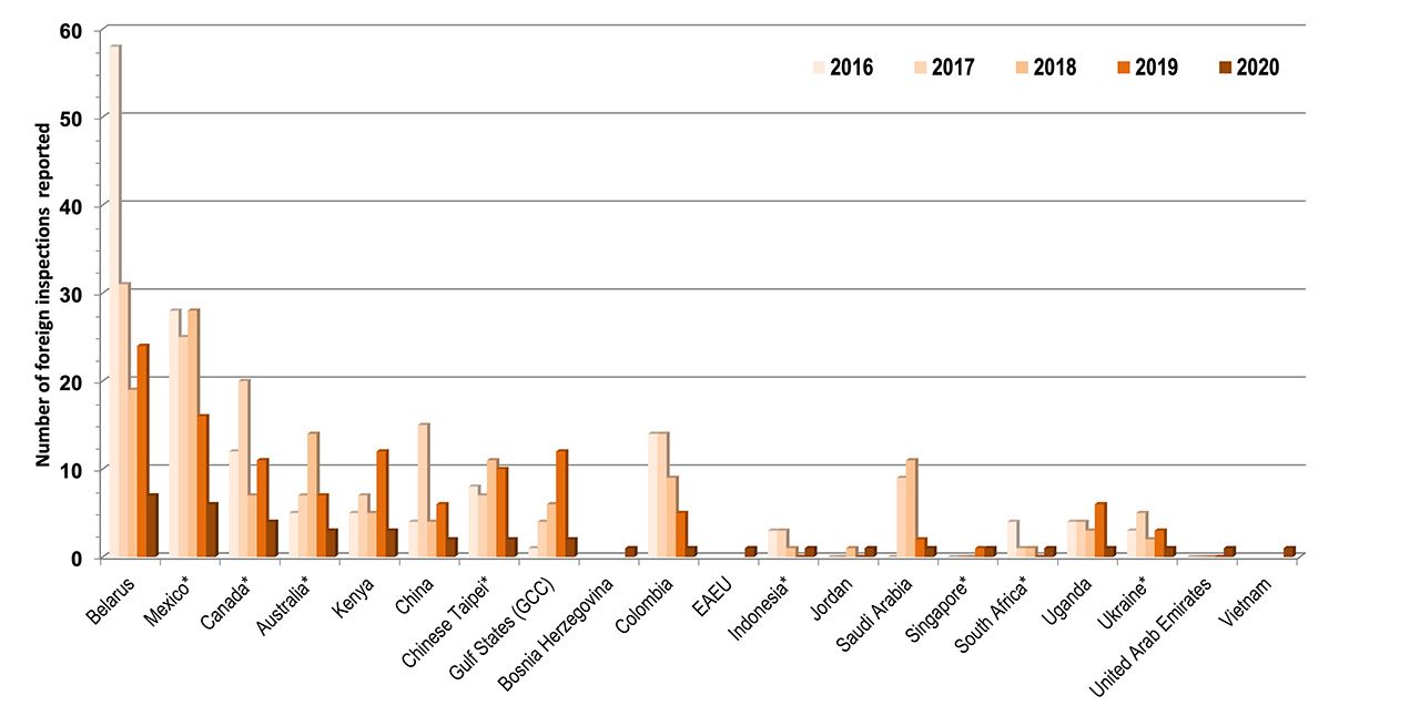 Foreign inspections. Foreign inspections are defined as inspections performed in a third country/region to the inspectorate. In 2020: