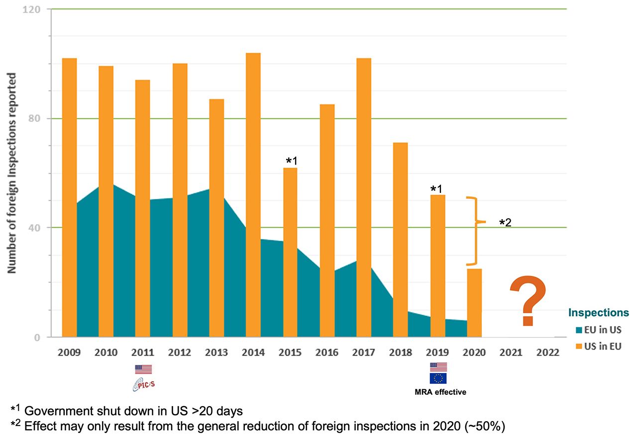 Despite the reduced number of inspections, industry continued to deliver safe and effective medicines of an appropriate quality, although companies noted delayed approvals because of postponing scheduled pre-approval inspections. Whether there will now be a surge in PAIs remains to be seen. The authors suggest that the duration of a PAI could be reduced at least, for example, to one day focussing on the clarification of the content of the dossier by referencing the results from surveillance GMP inspections (e.g., by a PIC/S member inspectorate or under existing MRAs, such as the EU-US MRA, which is an agreement for recognition of inspections, including PAIs). We encourage continuing the discussions of the scope of that and other MRAs to improve efficiency in planning and performing of all types of inspections.