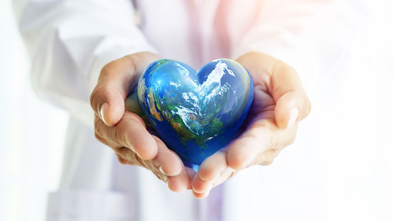 Hands hold Earth ball in heart shape on Doctor hands for World Health Day content and copy space.Elements of this image furnished by NASA | ©Flavius - stock.adobe.com
