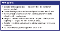 Isolators typically require ancillary equipment, such as fans, filters and extraction systems, which all need to be specified to the optimum size rather than over specified 'just to be safe'. Using low-energy consumption motors and frequency inverters can considerably reduce the utility requirements for running isolators, which reduces the carbon footprint of the site.